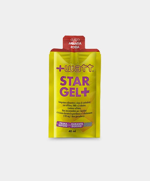 Per sostenere la performance di resistenza. StarGel+ è un gel di carboidrati (Vitargo®, maltodestrine, fruttosio e destrosio) che permette all’organismo di disporre di energia da pochi minuti dall’assunzione fino a un paio d’ore dopo. Star Gel+, inoltre, grazie alla presenza di carboidrati complessi quali le maltodestrine e l’amilopectina contenuta nel Vitargo, garantisce un supporto energetico durante gli esercizi di lunga durata. La β-alanina è un precursore della carnosina, la quale interviene tamponando l’acidità muscolare, dovuta anche dalla presenza di acido lattico. L’HMB è un derivato della leucina a cui viene riconosciuto un ruolo nell’incrementare la sintesi proteica. Ogni singola confezione di Star Gel+ contiene 60 mg di caffeina, che corrispondono all’incirca al quantitativo fornito da un caffè espresso.